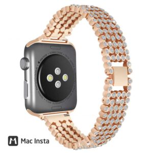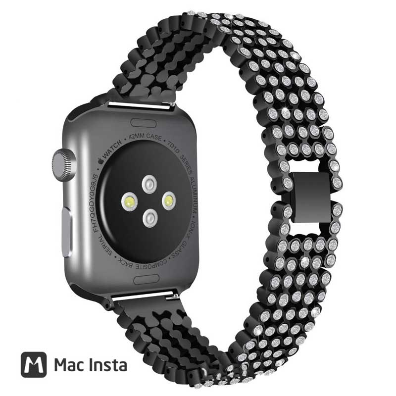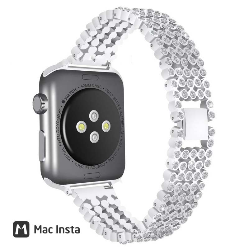 Apple Watch là một sản phẩm đồng hồ thông minh cao cấp của Apple mà không chỉ nam, cả phái nữ cũng rất ưa chuộng và mong muốn tậu cho mình 1 chiếc đồng hồ giá trị đấy. Tất nhiên, một chiếc đồng hồ cao cấp thì nhu cầu làm tăng thêm vẻ đẹp cho sản phẩm đấy cũng sẽ tăng cao, dây đeo đồng hồ là một phụ kiện mà các tín đồ Apple thường sẽ lựa chọn để làm điểm nhấn cho đồng hồ của mình. Mac Insta giới thiệu đến bạn sản phẩm Dây Apple Watch – Dây thép không gỉ đính đá, một kiểu dây vừa sang trọng hiện đại nhưng cũng không làm mất đi vẻ nữ tính cho phái nữ. Dây được làm từ chất liệu thép không gỉ bền chắc, không bị ảnh hưởng bởi các tác động vật lý hay mồ hôi khi bạn vận động mạnh, kết hợp với đính đá lấp lánh giúp làm nổi bật hơn chiếc Apple Watch của bạn. Cùng ngắm nhìn sản phẩm này nhé